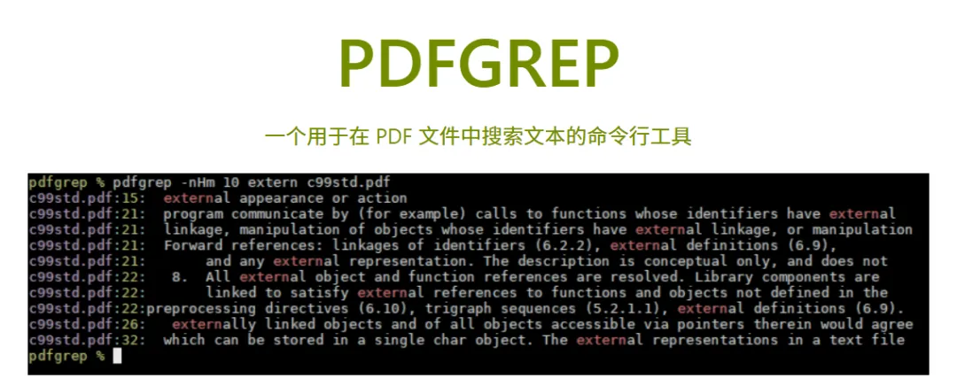 如果你需要在大量PDF文件里批量搜索某个关键词,这个命令行工具速度非常快。对经常整理教学资料、文献的老师来说,比一个个打开文件搜索省事多了。