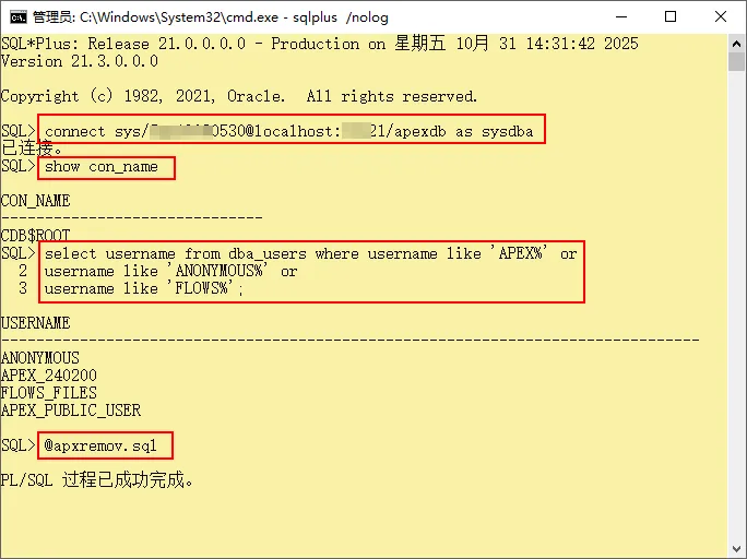 Oracle数据库中删除安装的APEX和ORDS图示教程