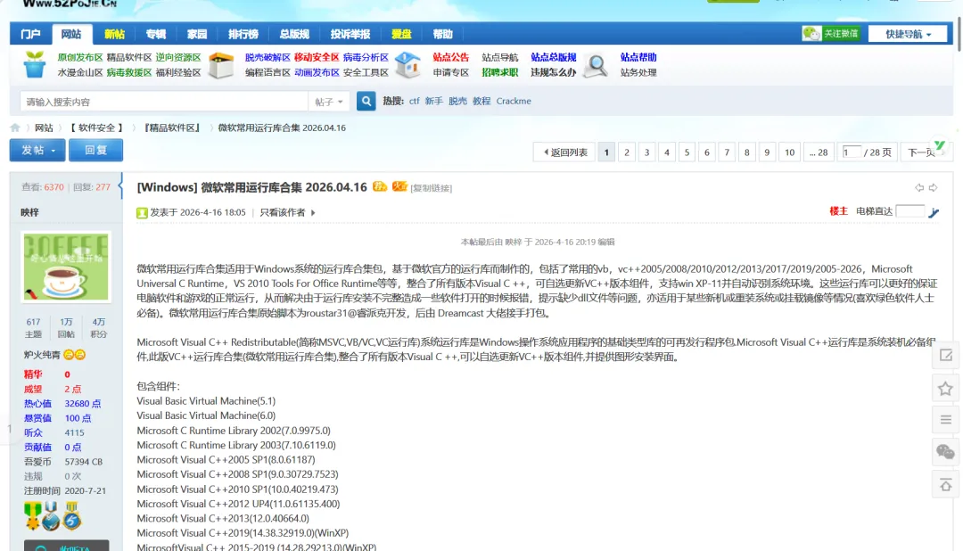 今天给大家挖到吾爱破解thread-2103369这篇宝藏帖,全篇只分享1款核心工具,专门搞定Windows运行库、DLL缺失、环境异常问题,干净又好用!