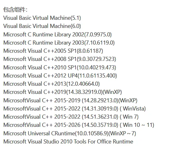 集成VC++ 2005-2022、.NET Framework、DirectX、OpenAL等全部系统必需运行库,不用逐个下载安装。