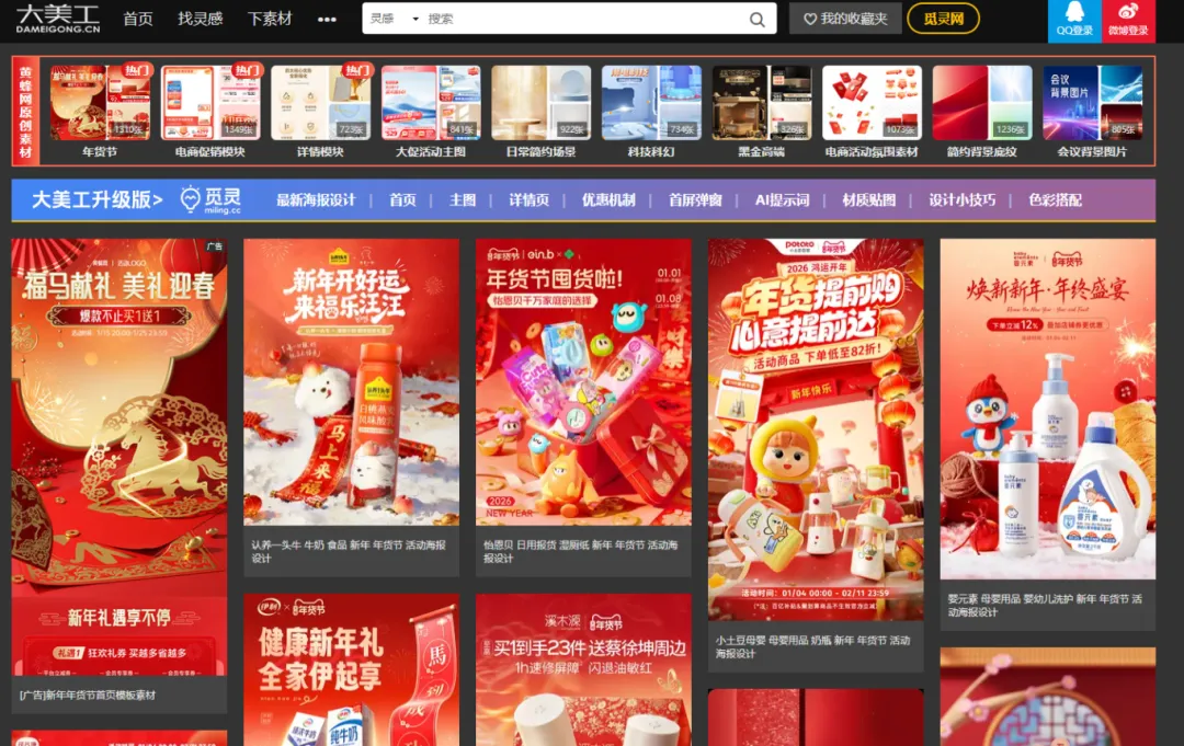大美工——这是一个专注网页设计、电商设计、平面设计及UI设计的灵感库,同时提供优质素材下载;软件支持网页端访问。