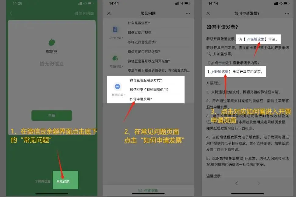 充值成功后,打开微信查看微信豆余额。如需发票,请按照第五部分的方法及时申请。