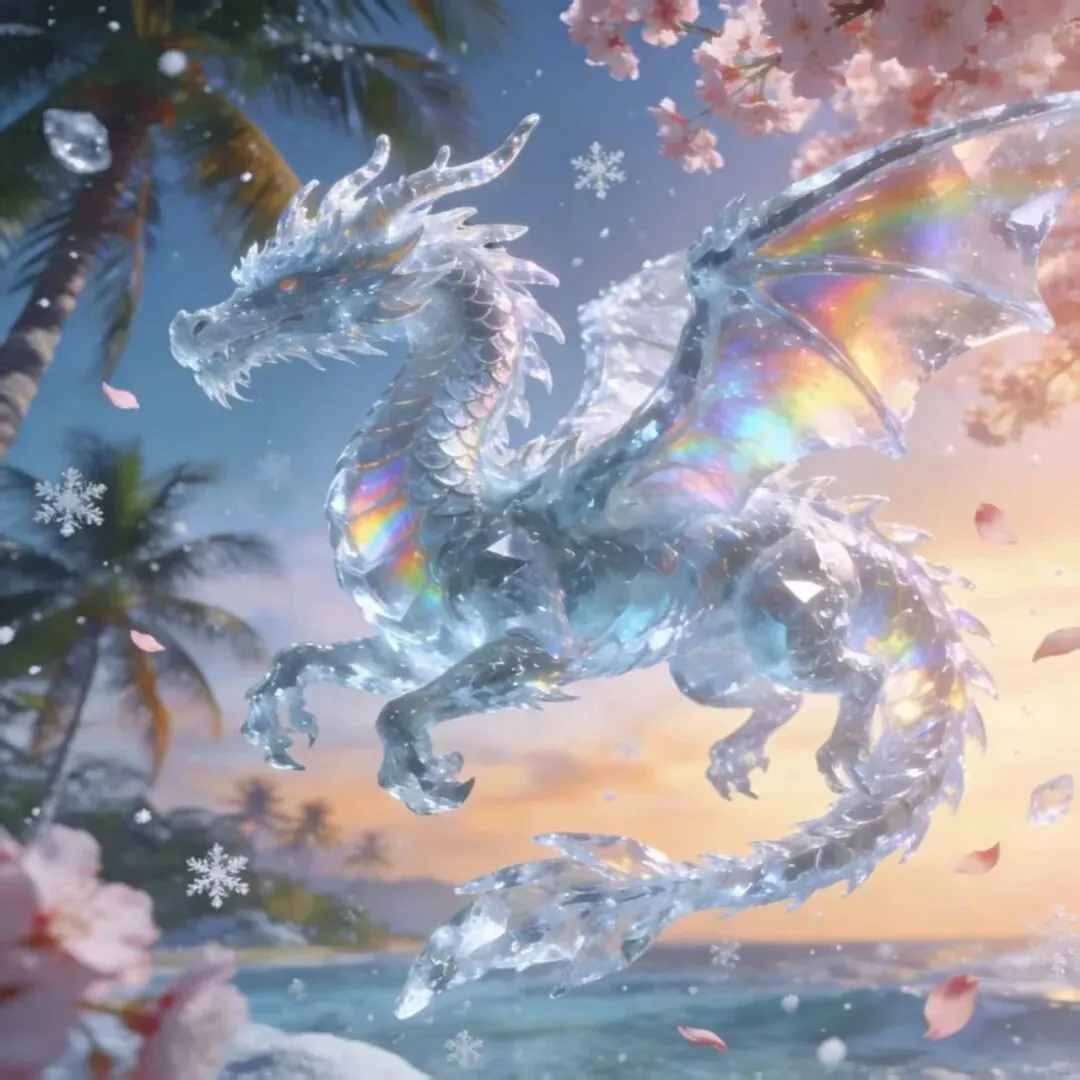 案例4:史诗级奇幻场景 - 冰晶巨龙+热带海岛,想象变成现实
