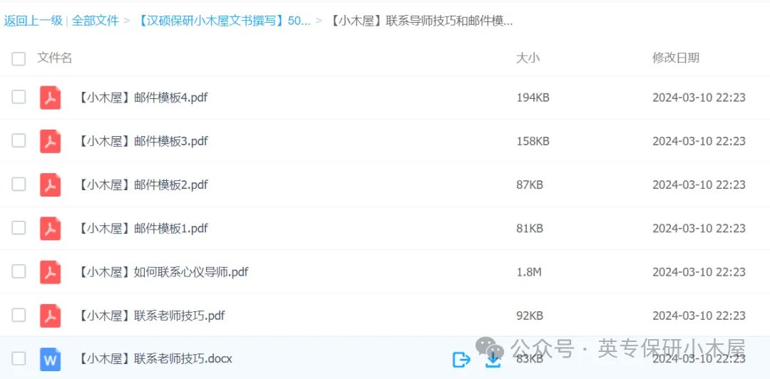 ✔方式一:转发该推文到2个50+人的2023级保研交流群(小木屋的交流群除外哦,如果没有保研交流群,班级群或者年级群也是可以哒),微信交流群保留5min/QQ交流群保留24h之后,发给艾米学姐,即可免费领取【文书模板】!