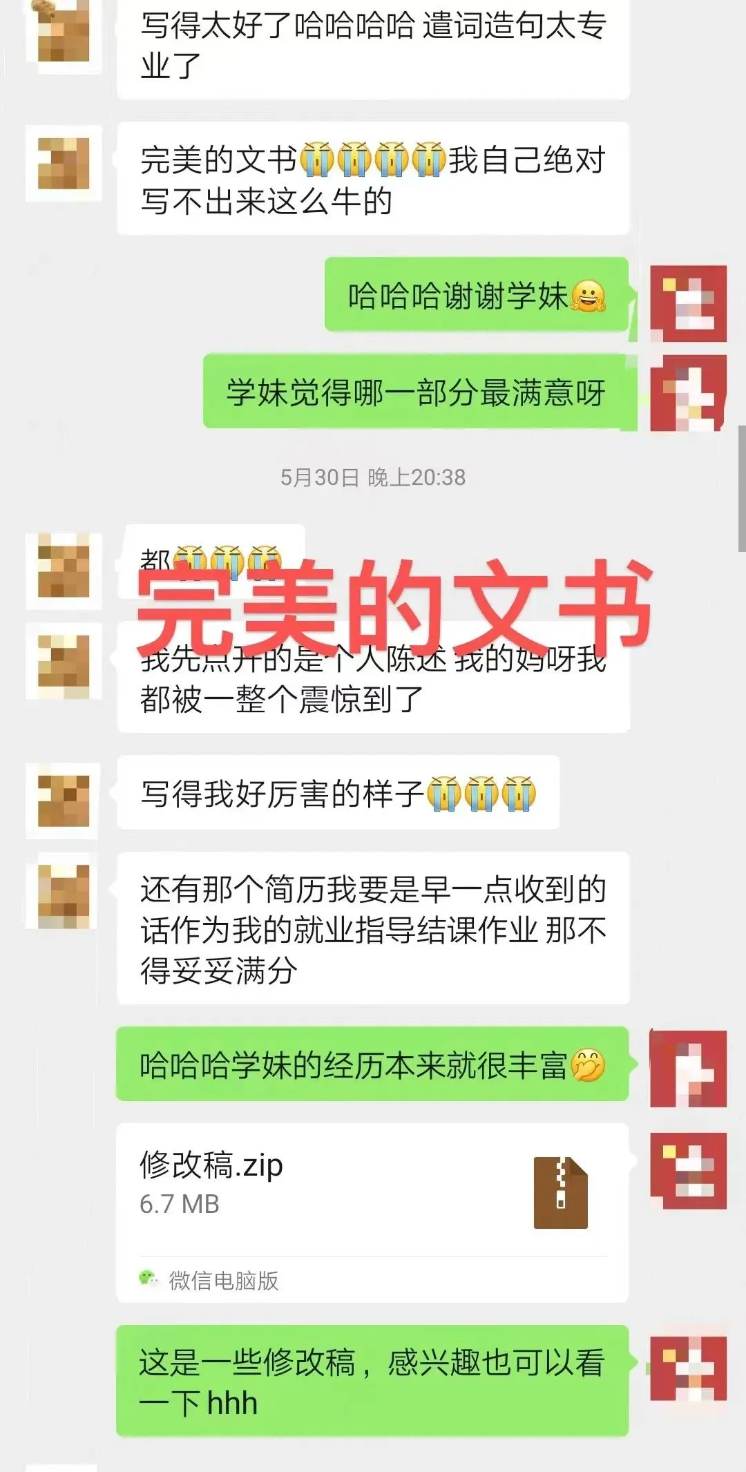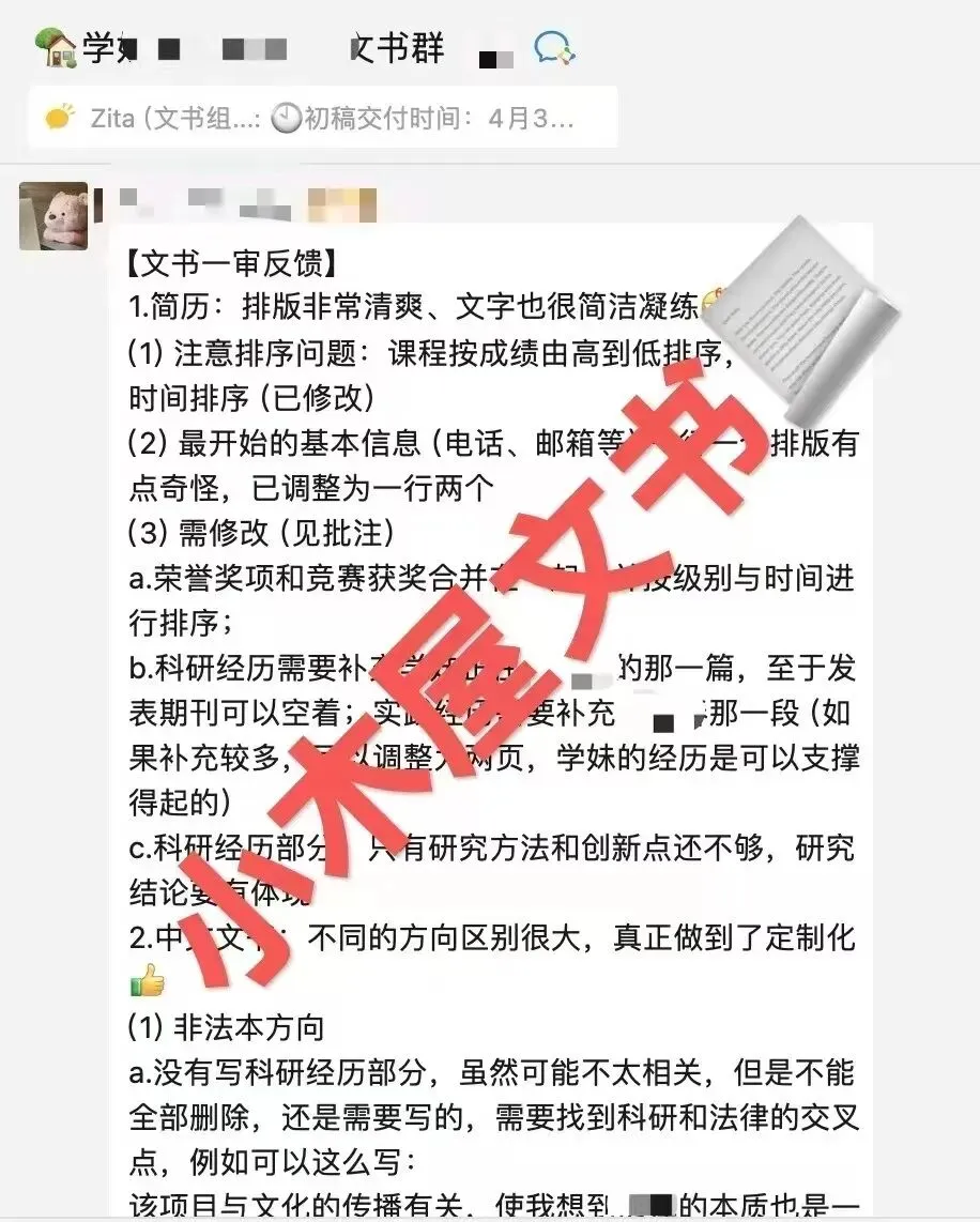 图为文书导师撰写完初稿后,质控组长审核修改