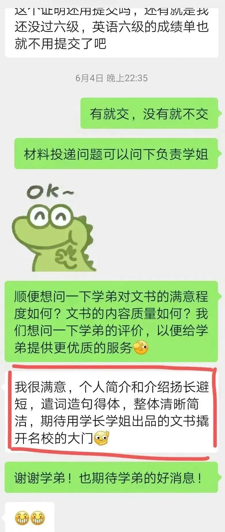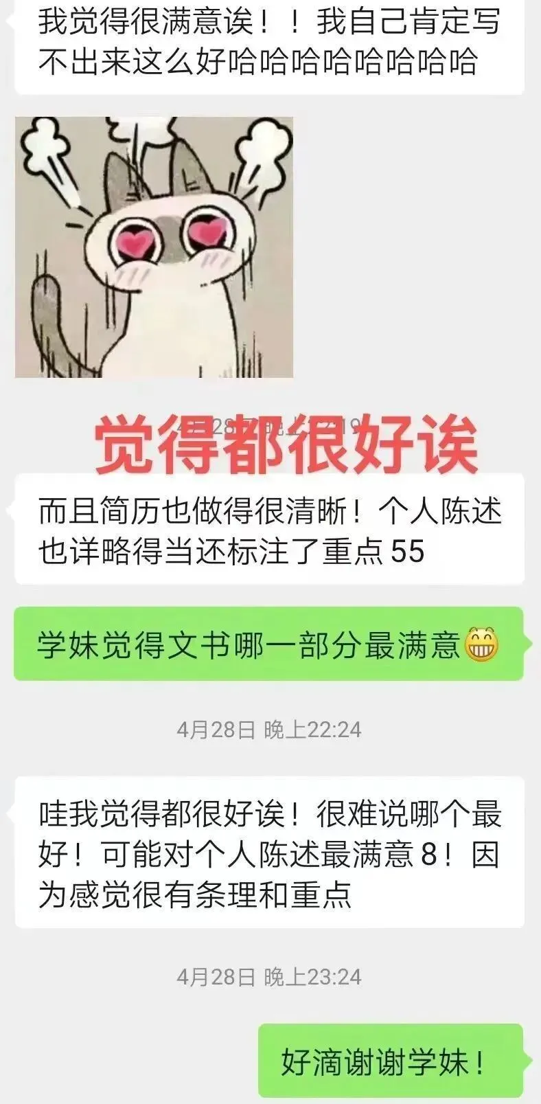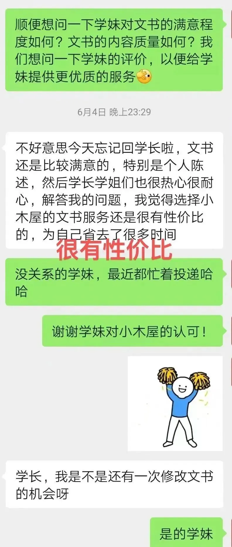 小木屋文书团队导师具有丰富的文书撰写经验,在2024年推免过程中,小木屋文书团队齐心协力,帮助学弟学妹打磨出一份份精彩的文书,获得学弟学妹们的一致好评。在文书撰写过程中,学长学姐与学弟学妹们都收获颇多,今年,老学长学姐们将继续带着24年的收获更好地服务新一届的学弟学妹!