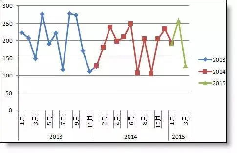 用同样的方法,做了一个分年显示不同颜色的曲线图。