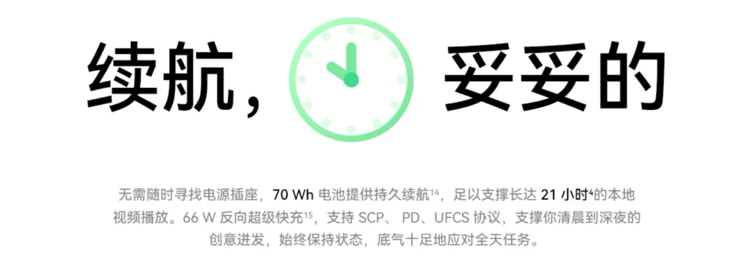 •电池: 70Wh大电池,续航持久到让你忘了插座长啥样。以前是“电量焦虑症”患者,现在是“续航界扛把子”。