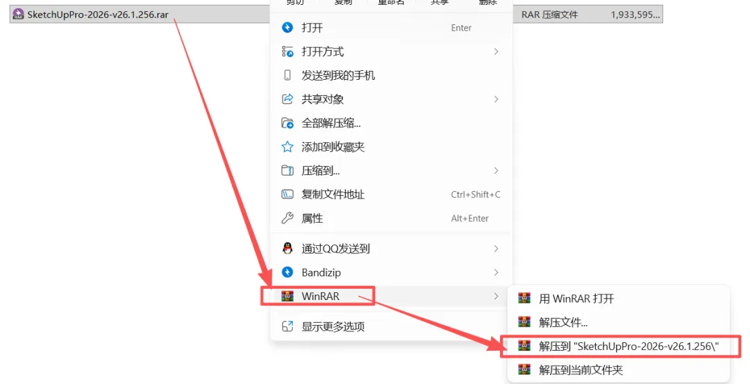 1.鼠标右击【SketchUpPro-2026-v26.1.256】压缩包选择【SketchUpPro-2026-v26.1.256】文件夹。