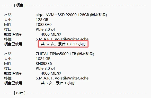 主硬盘:aigo NVMe SSD P2000 128GB (128 GB / 固态硬盘)