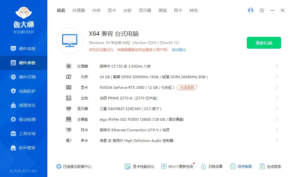操作系统:Windows 10 专业版 64位(Version 22H2 / DirectX 12)