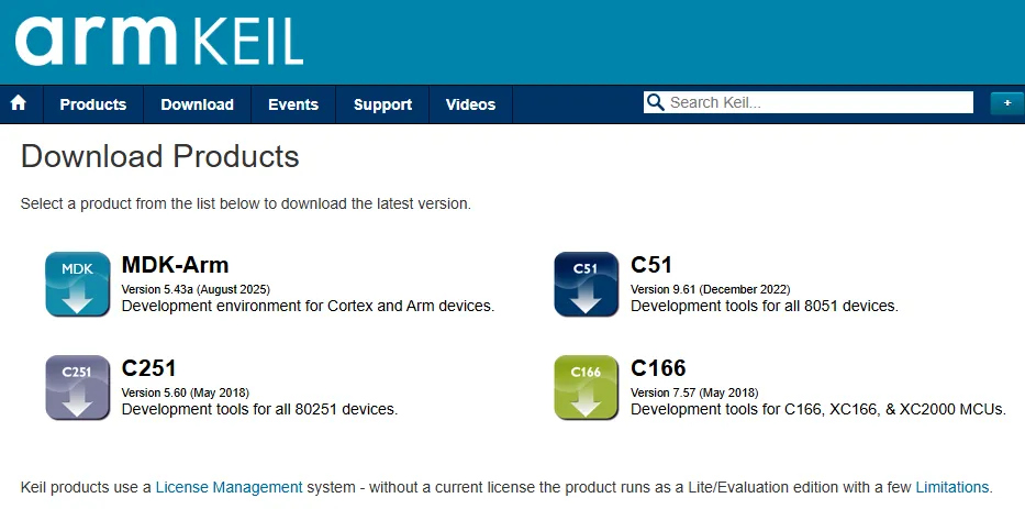 1. 网址:https://www.keil.com/- 包含Keil Studio,uVersion IDE,ARM C/C++编译器,中间件