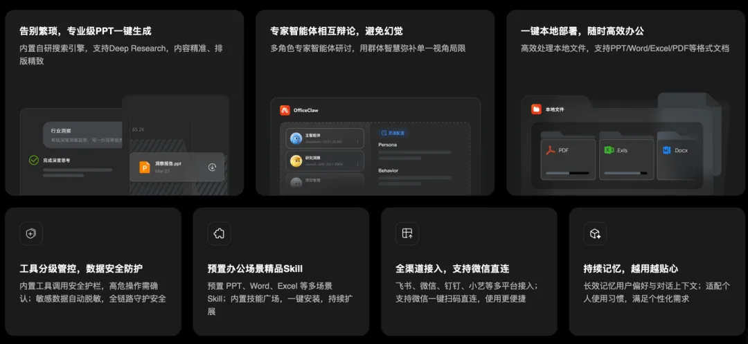 OfficeClaw 支持多种智能办公场景,IT之家整理如下: