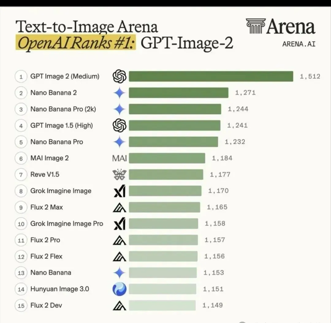 大幅领先于排在第二的Nano Banana 2