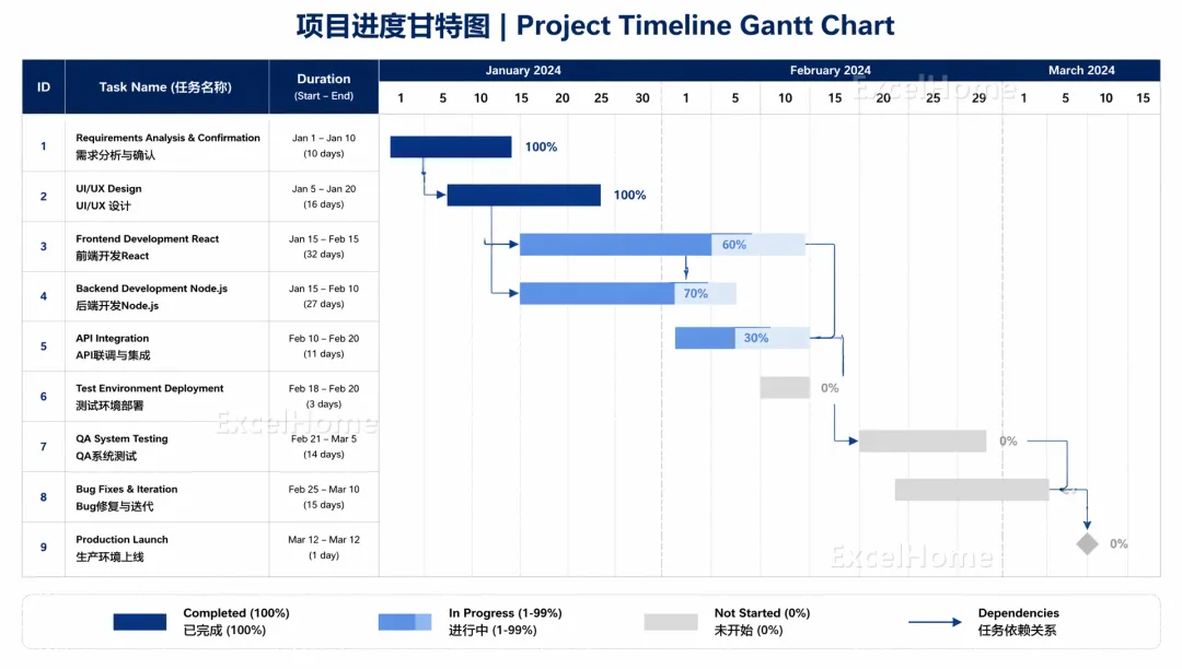 这么好看的甘特图,用 Excel 或 WPS 做出来还是挺难的。