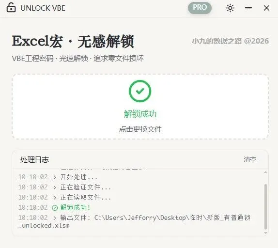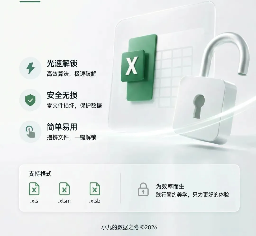 一款专注于Excel VBA工程解锁的工具:光速解锁,无感操作——@小九的数据之路