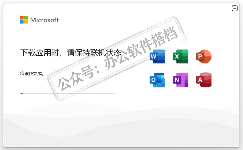 4.运行后Office程序会自动进行安装,无需其他操作。(提醒:Office软件默认安装电脑的C盘,请预留不少于10GB以上的空余空间)