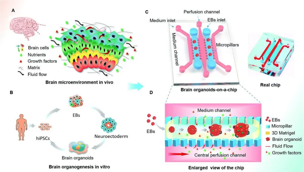 这不是科幻电影里的特效场景,而是武汉大学陈璞教授团队公布的一项研究成果:跨胚层共发育类器官芯片。简单说,就是科学家们用人类干细胞,在芯片上“种”出了一个迷你版的“心脑系统”。它最特别的地方,不只在于同时长出了“脑”和“心”,更在于这两个器官样结构之间建立了联系,能够模拟人体中心脑联动的部分过程。