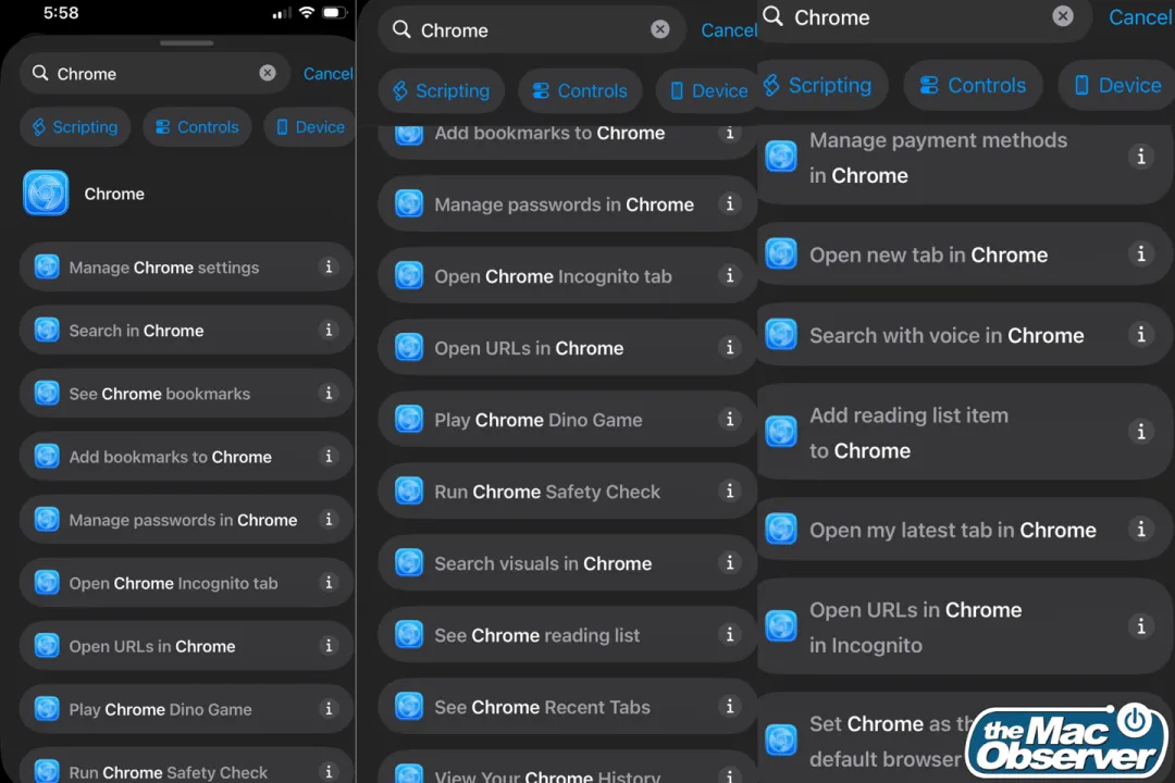 4 月 23 日消息,科技媒体 macobserver 发布博文,报道称在最新 TestFlight 测试 iOS 版 Chrome 浏览器中,谷歌扩展支持快捷指令(Shortcuts),并深度集成 Siri 体验。