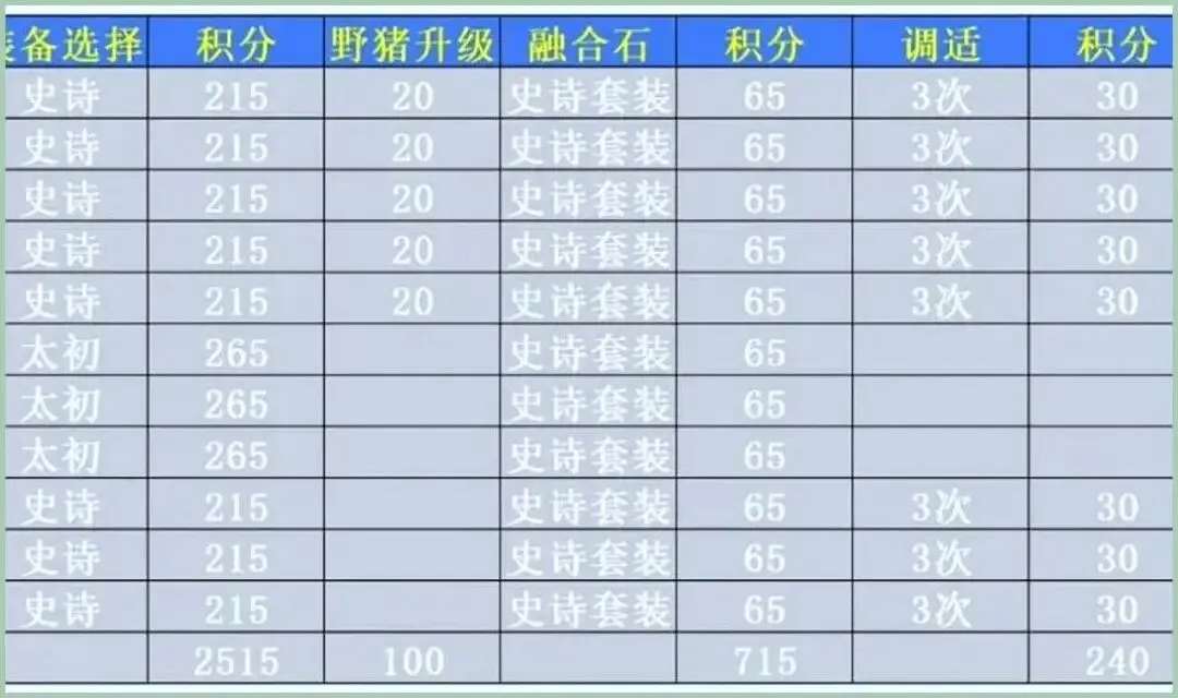 因此看完这波野猪版本的毕业模版后,结论其实就很清楚了:小号优先堆满积分,平民大号在“黑牙升级”和“调适次数”的选择上寻找平衡点,土豪则以秘宝数量反推贴膜以及调整。说到底这次的新版本并不是只有唯一的道路可以走,在官方把各种程度不同的玩家都塞进同一个积分框架中之后,只要你能够理解2550这个门槛的话,那么后面的路怎么选都不会吃亏太大。