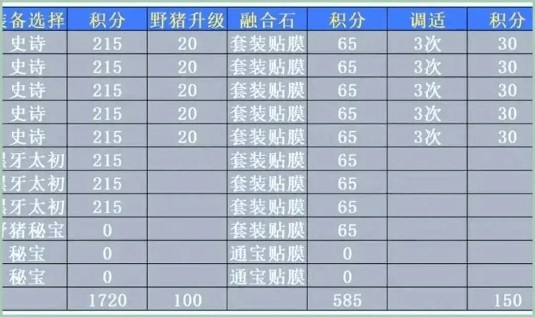 兄弟们,1.08野猪版本一出来的时候,大家都最关心的不是能不能刷到东西了,而是毕业应该怎么走才不会出问题。很久以来一直在玩随机深渊,结果一看积分系统、野猪升级、黑牙太初、秘宝左槽都被绑在一起了,确实让人头大。但是这次好就好在,毕业路线已经整理得非常清楚了,核心思路其实只有一个:先冲2550积分套装达到门槛之后,再看是否继续补调适或者换通宝贴膜以提高上限。