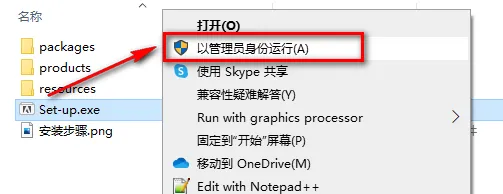 2.找到并选中Set-up,鼠标右键点击“以管理员身份运行”