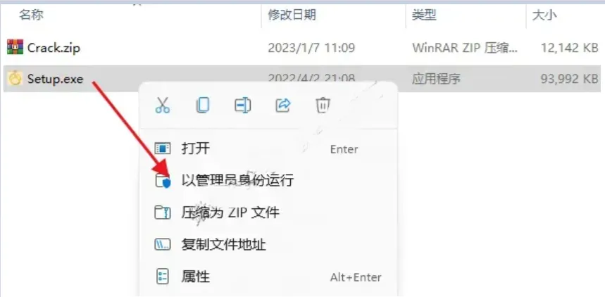 2.打开解压后的文件夹,鼠标右击【setup】选择【以管理员身份运行】。