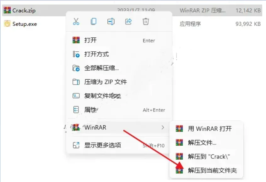 温馨提示:解压【Crack】前,先关闭所有杀毒软件,否则可能会被杀毒软件误杀无法运行。若已经没有该文件,需重新解压安装包。