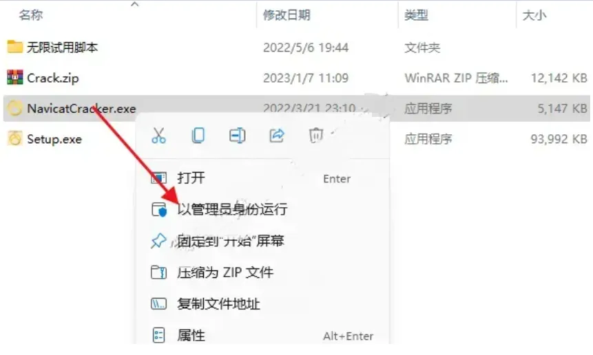11.鼠标右击解压出来的【NavicatCracker】选择【以管理员身份运行】。