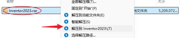 1.解压安装包:鼠标右击【Inventor2023】压缩包,选择电脑上安装的解压软件,点击【解压到Inventor2023】。