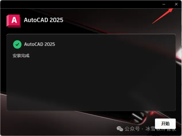 5.点击右上角的关闭,如果点击了开始,也请先关闭CAD软件