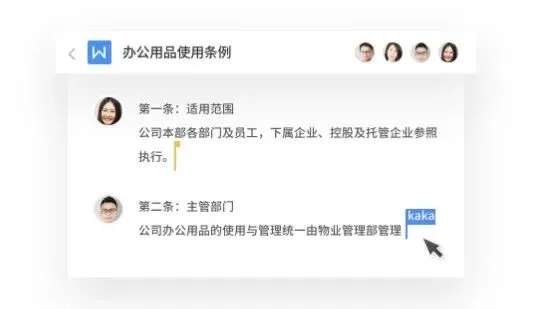 1、多人协作 多人实时在线查看和编辑,一个文档,多人同时在线修改;实时保存历史版本,随时可以恢复到任何一个历史版本