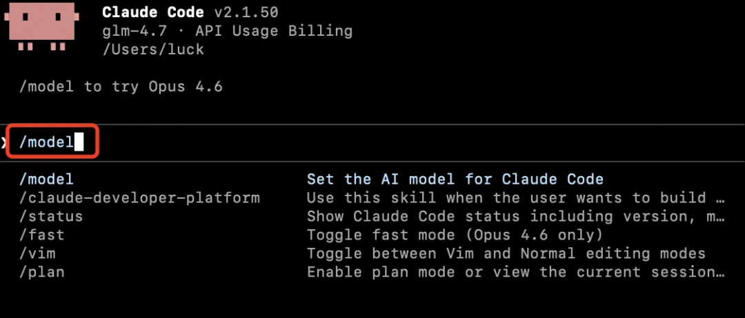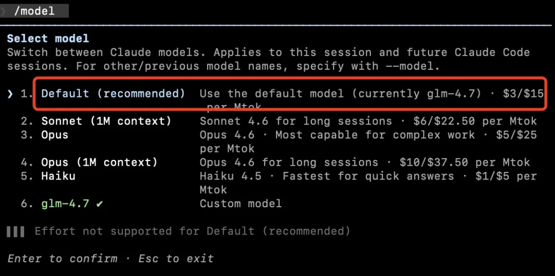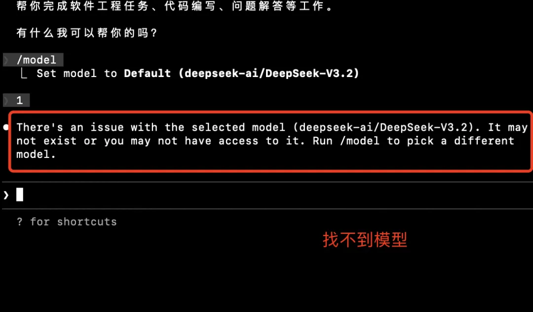 在选择或者起换模型这一步,可能会出现Claude Code找不到模型,这个时候你就要去排查: