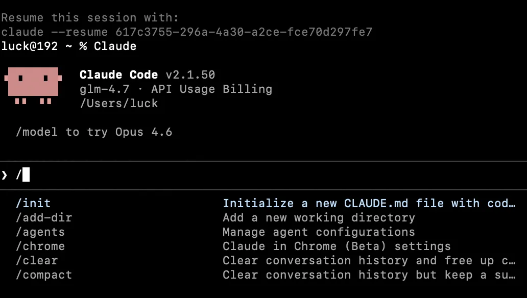 在Claude Code中输入“/”,可查看所有的会话指令,具体如下: