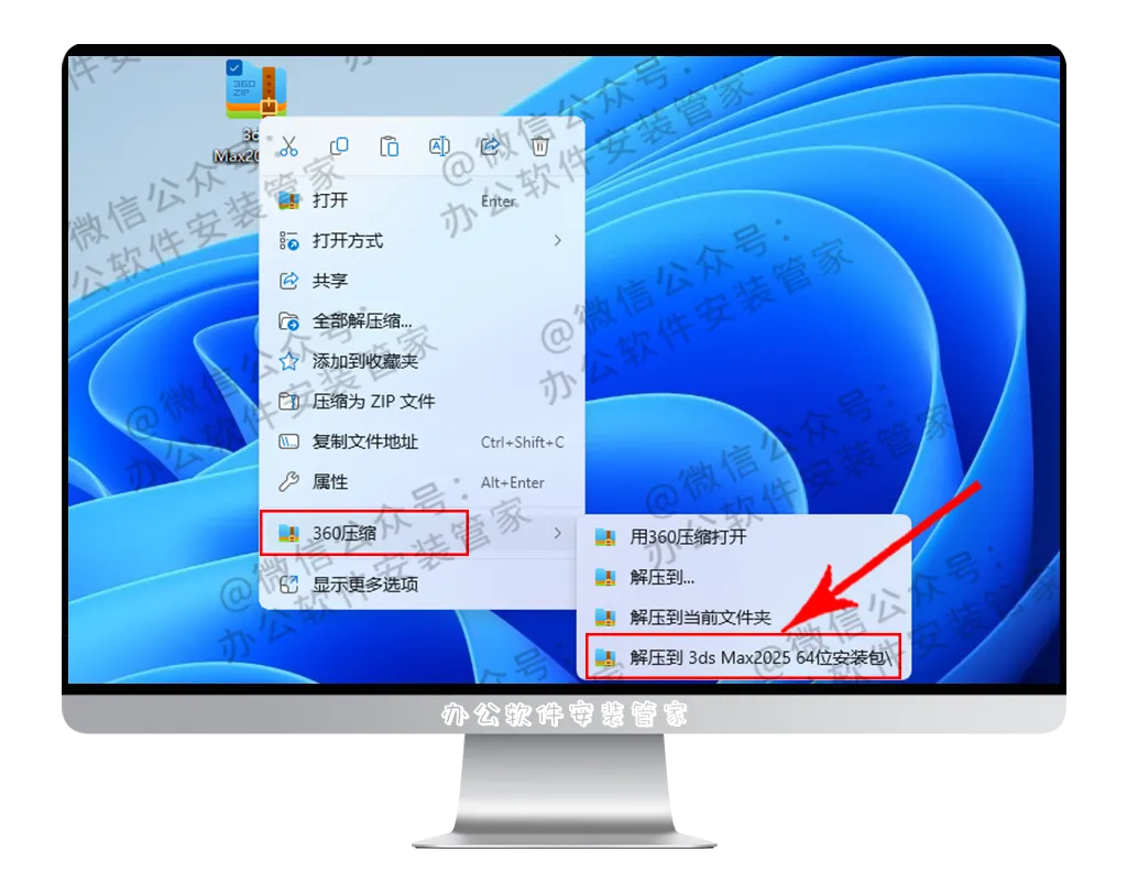 1.找到并选择已下载好的 【3ds Max2025 64位安装包】 压缩包并进行解压操作