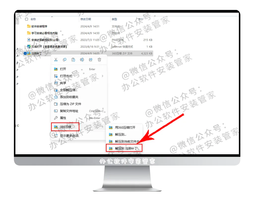 13.选中:【注册补丁】右键解压