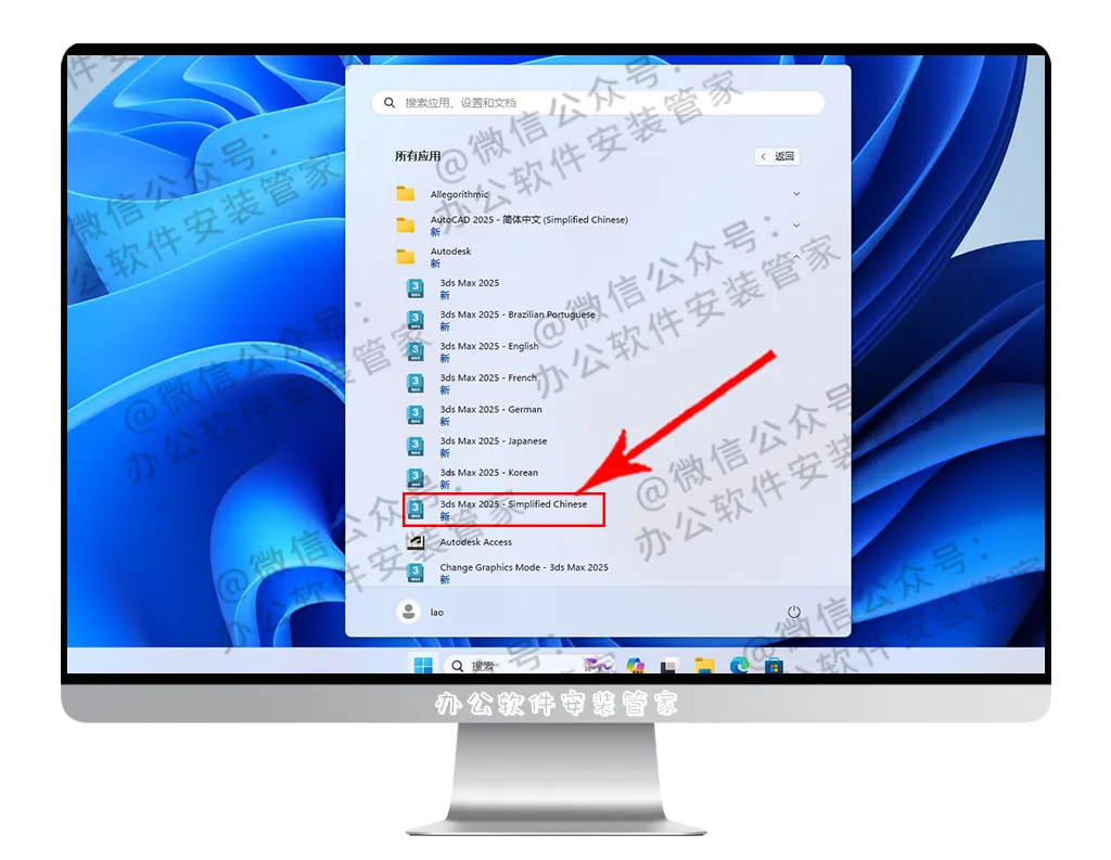 在里面找到并打开:3ds Max 2025 - Simplified Chinese