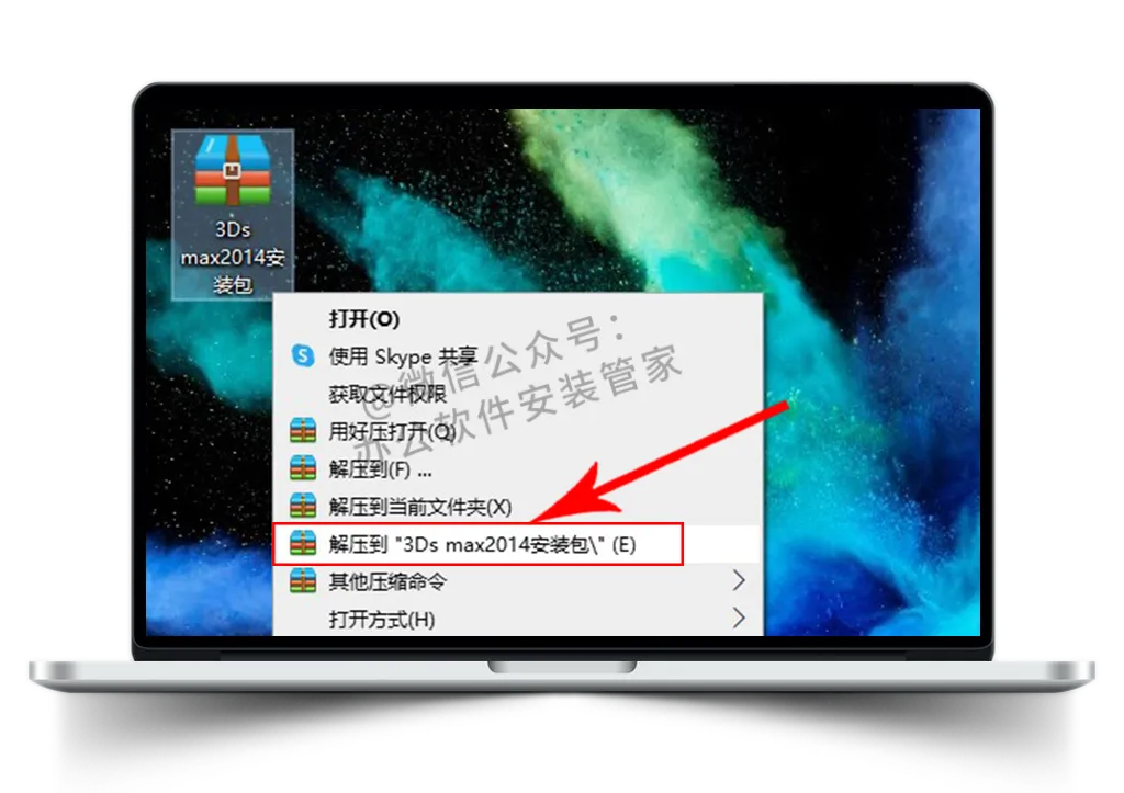 1.找到并选择已下载好的 【3ds max2014安装包】 压缩包并进行解压操作