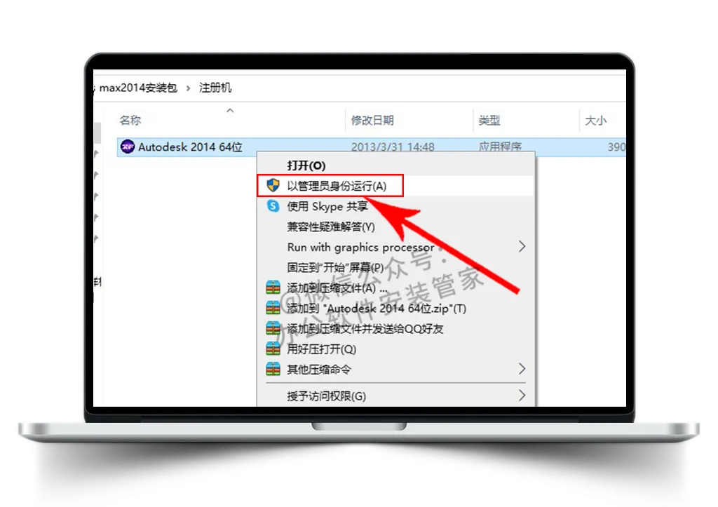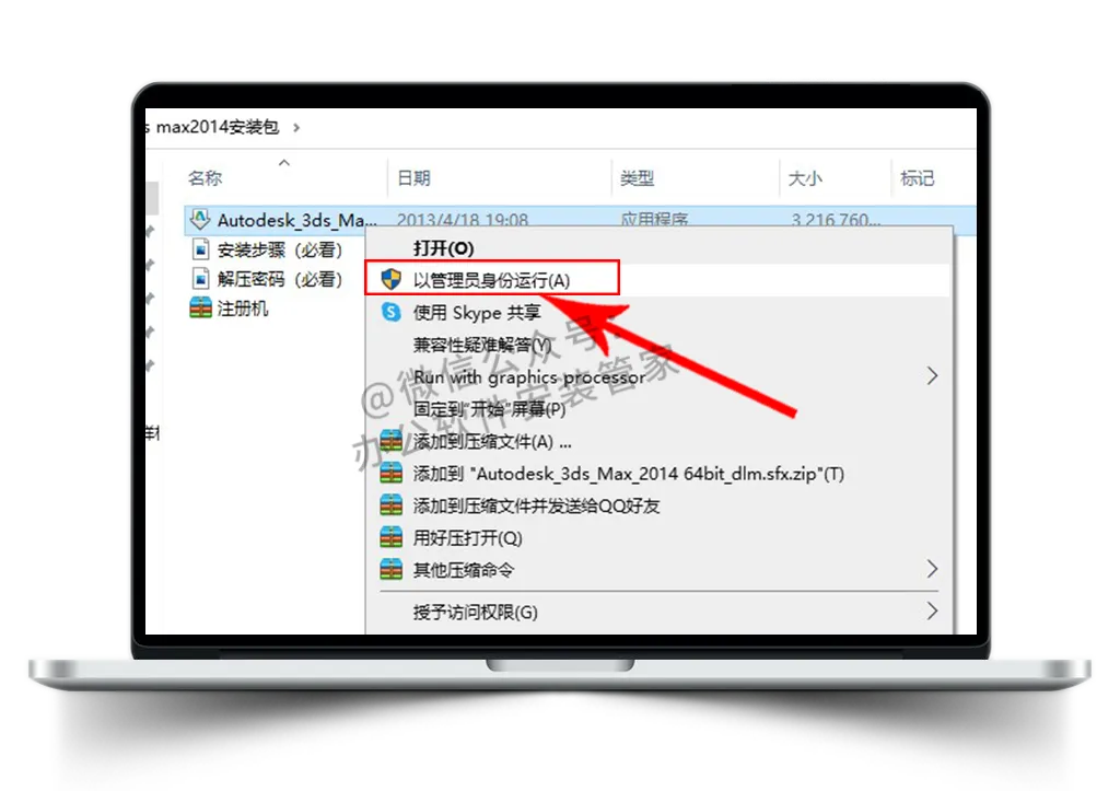 3.选中:【Autodesk_3ds_Max_2014 64bit_dlm.sfx】右键已管理员身份运行