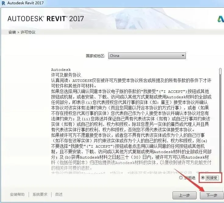5.选择我接受,点击下一步。