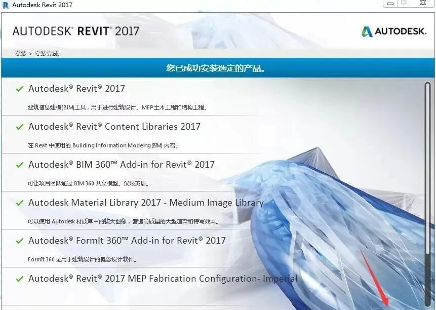 温馨提示:安装过程中会在线下载Revit族库,这个进度跟你的网速与Autodesk服务器有关,请耐心等待。