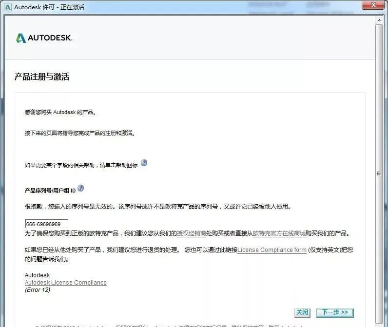 14.点击关闭后会自动回到第11步激活界面,这时重新操作第11、12步即可出现以下窗口,开始下面的破解步骤。
