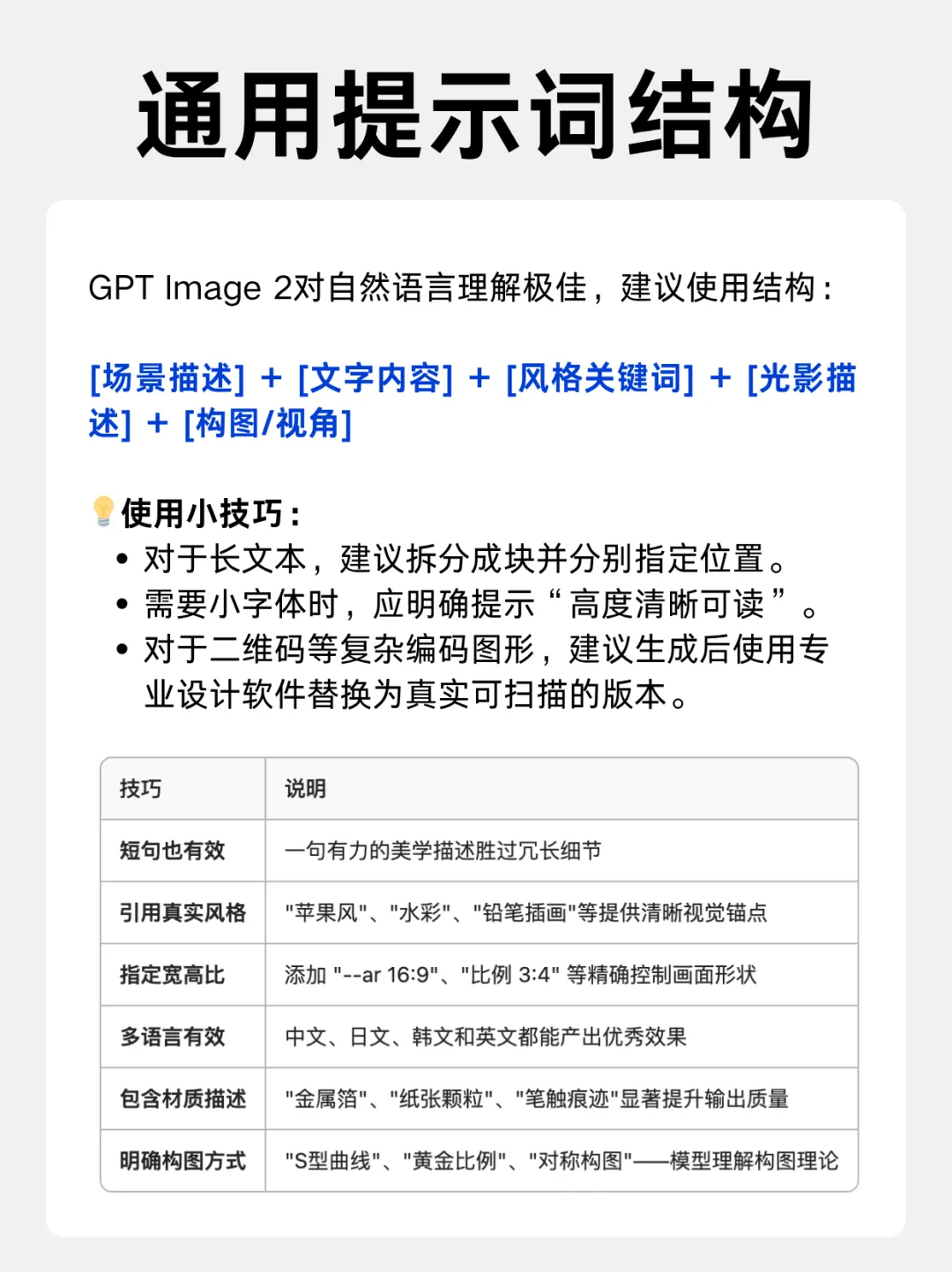 夜雨聆风 > > 办公文件 > GPT image2,万能提问模版来了!(免费)