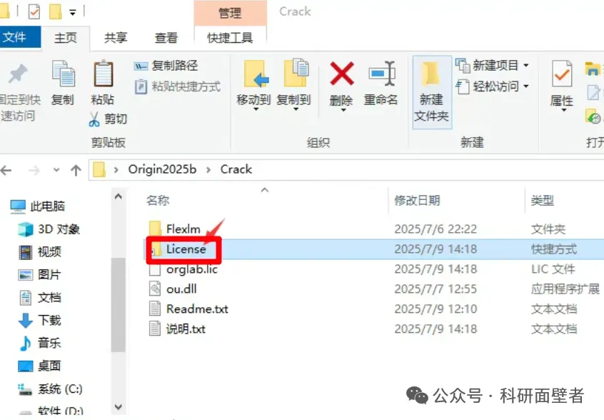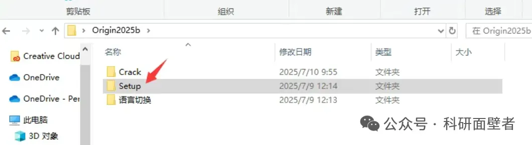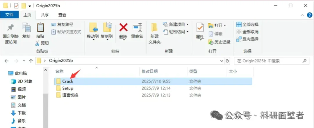 打开前面解压缩后的origin2025b文件夹,进入Crack文件夹: