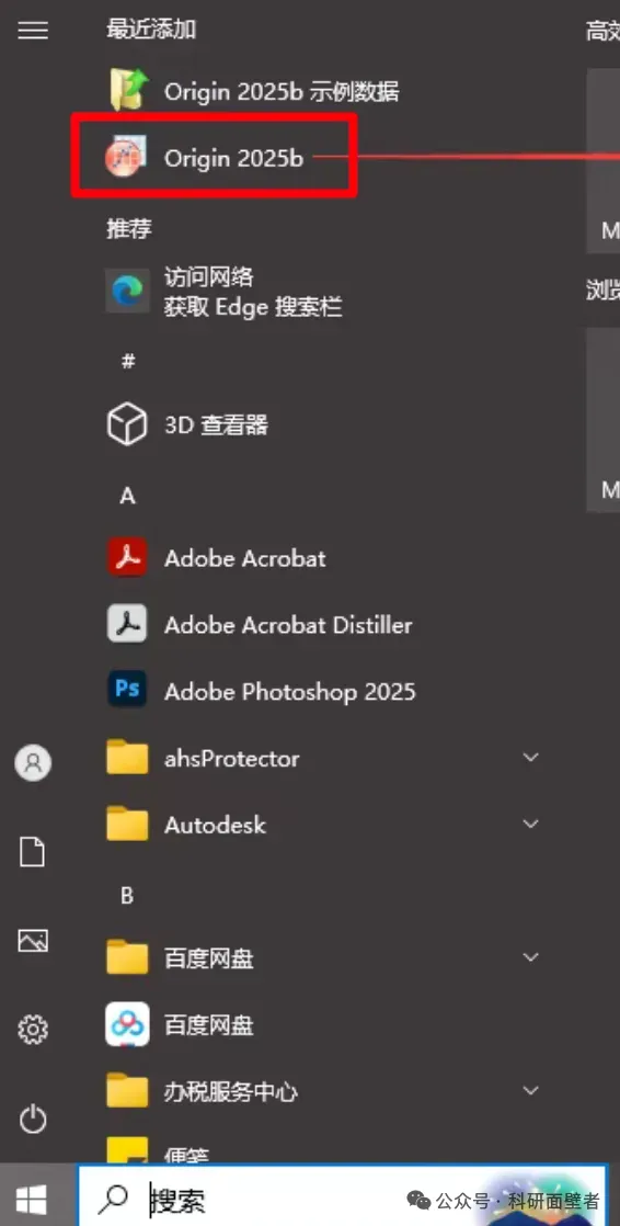 左下角开始菜单,将Origin 2025b图标拖拽到桌面上: