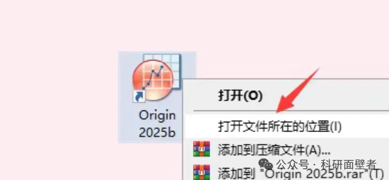 然后鼠标右键桌面上的Origin2025b图标,打开文件所在的位置: