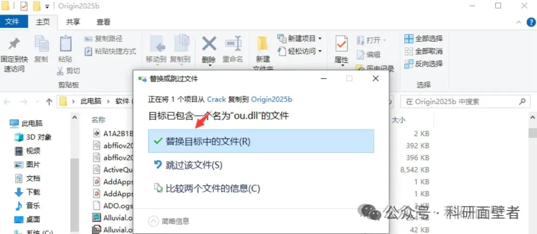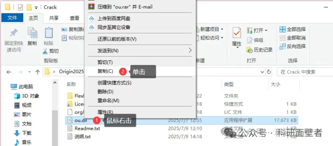 然后重新进入解压后的Origin2025b文件夹中的【Crack】文件夹,复制ou.dll文件: