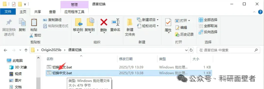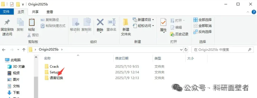 重新打开解压后的Origin2025b文件夹进入【语言切换】文件夹: