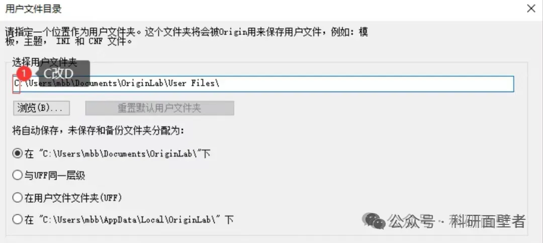 然后双击桌面上的origin2025b图标运行origin,第一次运行会弹出如下,可以直接点击确定,或者修改目录为D盘: