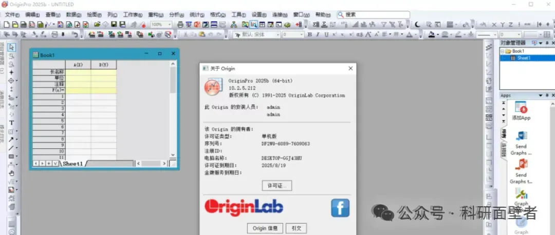Origin 是一款由 OriginLab 公司推出的集科学绘图与数据分析于一体的专业软件,能够生成多种形式的二维与三维图形。在数据分析方面,该软件内置了较为完善的功能模块,涵盖统计分析、信号处理、曲线拟合以及峰值识别等常见科研需求。